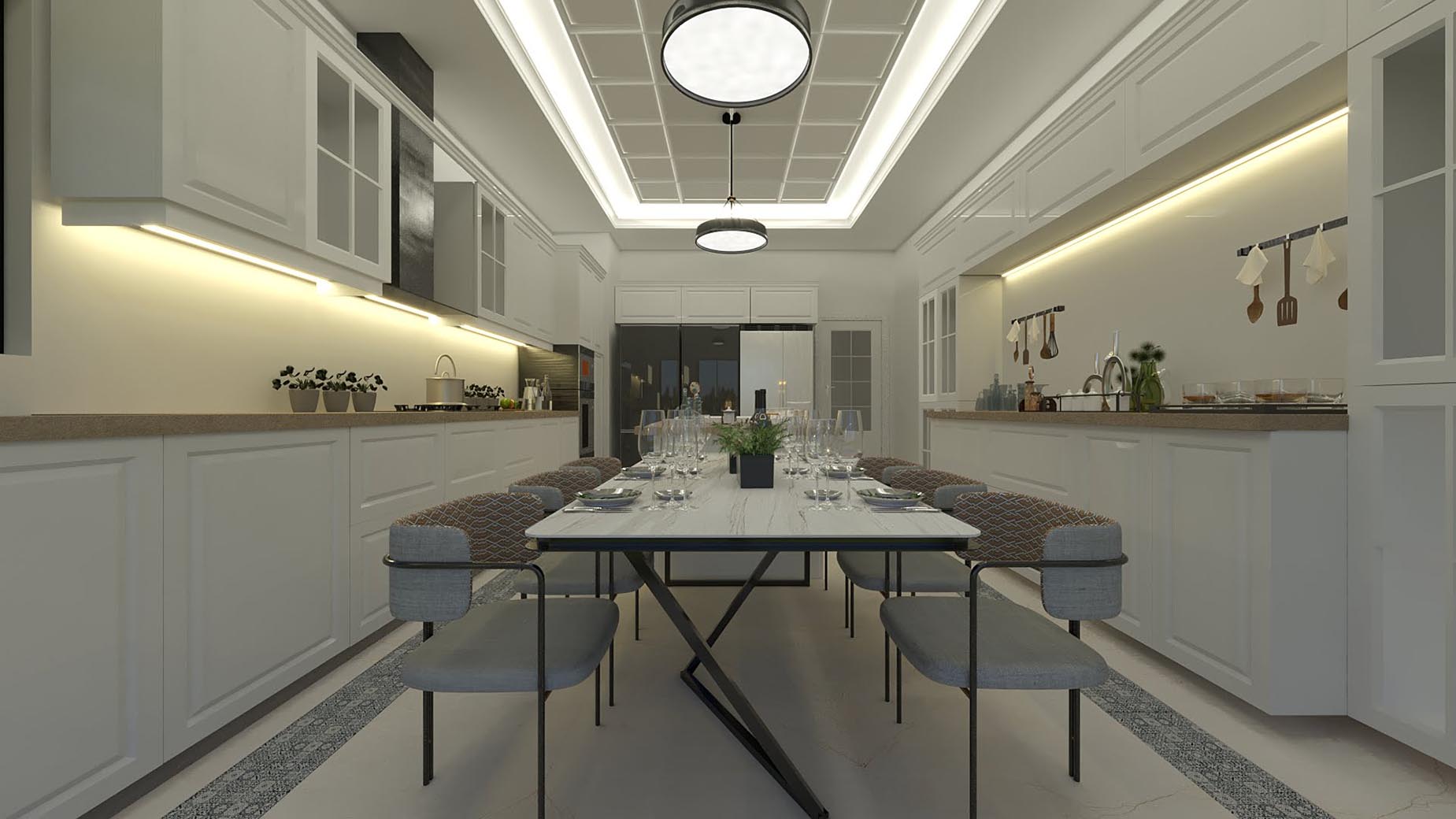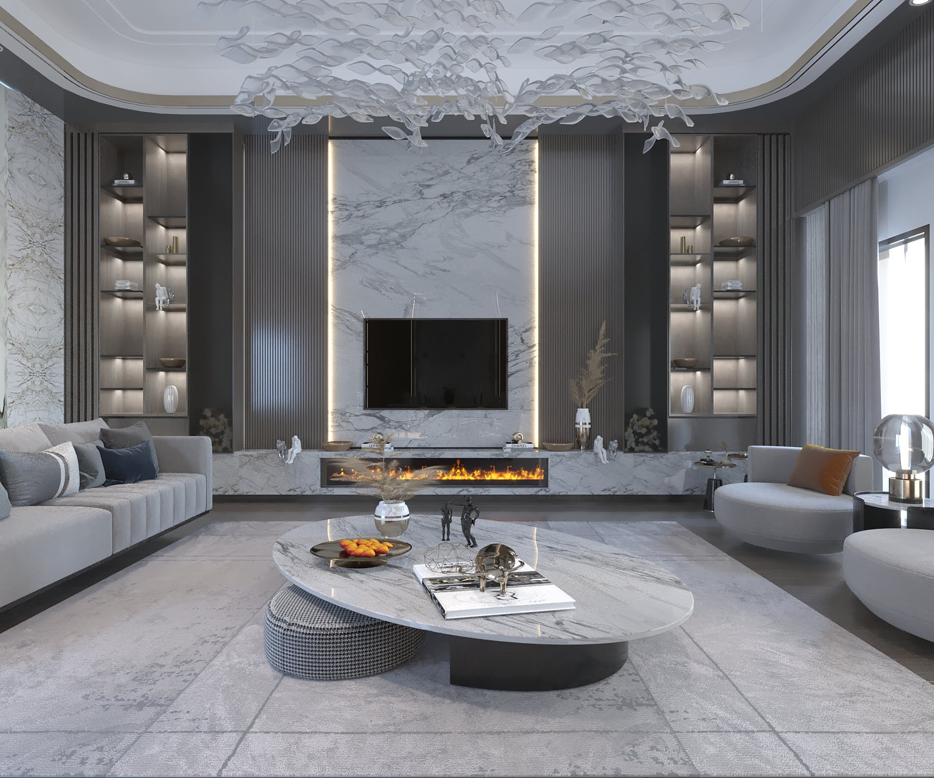 Temiz hatlara sahip mobilyalar ile ferah bir düzen ve modern bir atmosfer yaratılırken, porselen, ahşap malzemeler ile doğal bir dokunuş eklendi. Bu sayede, minimalist ve çağdaş bir yaklaşımla, sıcak ve samimi bir ortam oluşturuldu.