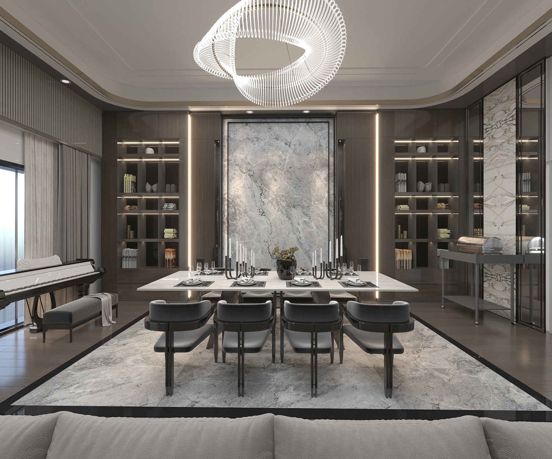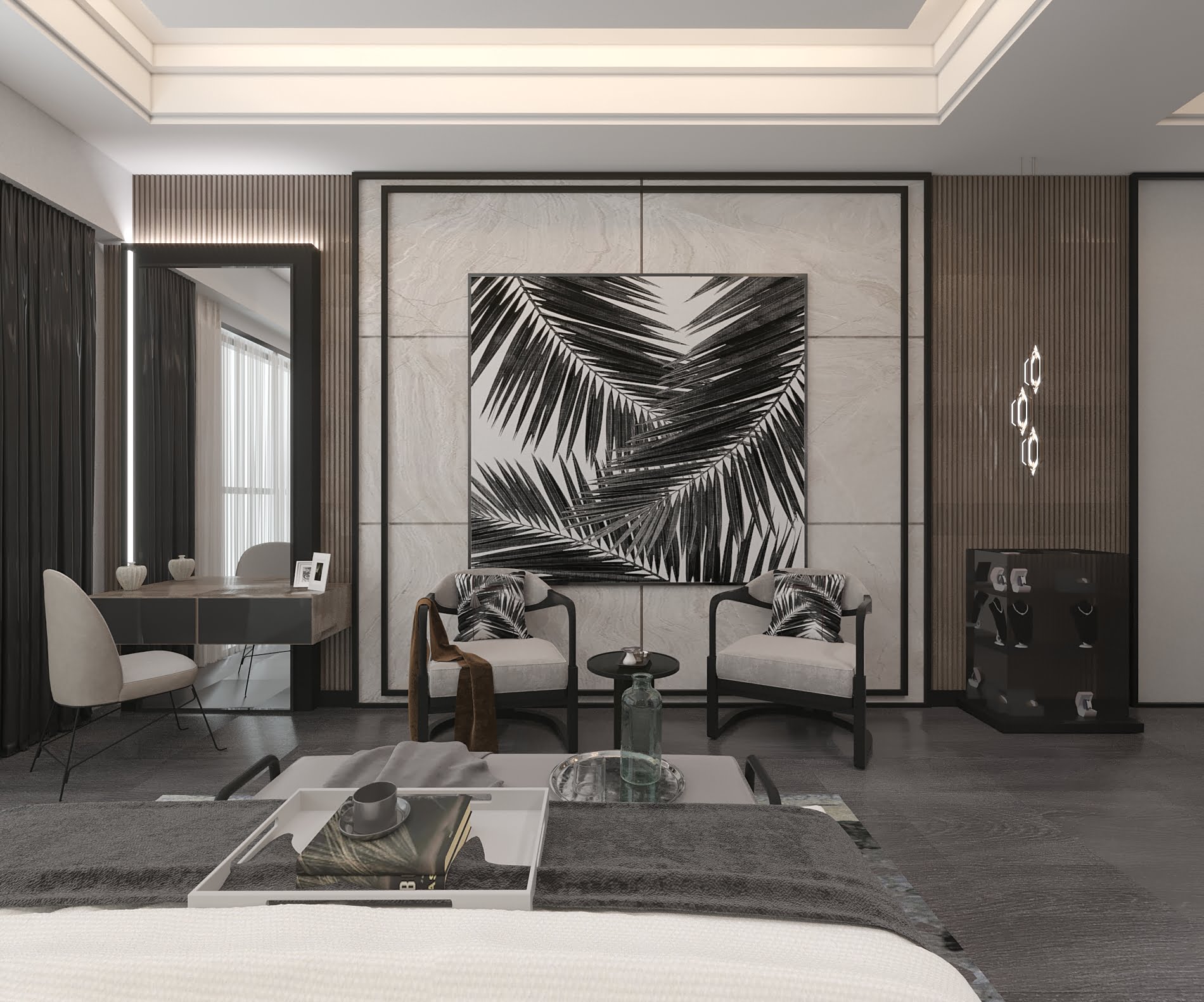 Dekorasyon ve aksesuar seçimlerinde de özenle hareket edildi. Modern çizgileri vurgulayan aksesuarlar, mekâna dinamizm kattı. Özellikle minimalist duvar panelleri ve tablolar, tasarımın şıklığını ve özgünlüğünü destekledi.